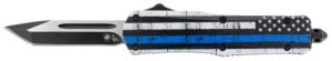 Templar Knife LBTB231 Gen II Back The Blue Large 3.50″ OTF Tanto Plain Black Oxide Stonewashed 440C SS Blade, 5.25″ Black & White w/Blue Line Aluminum Handle, Glass Breaker