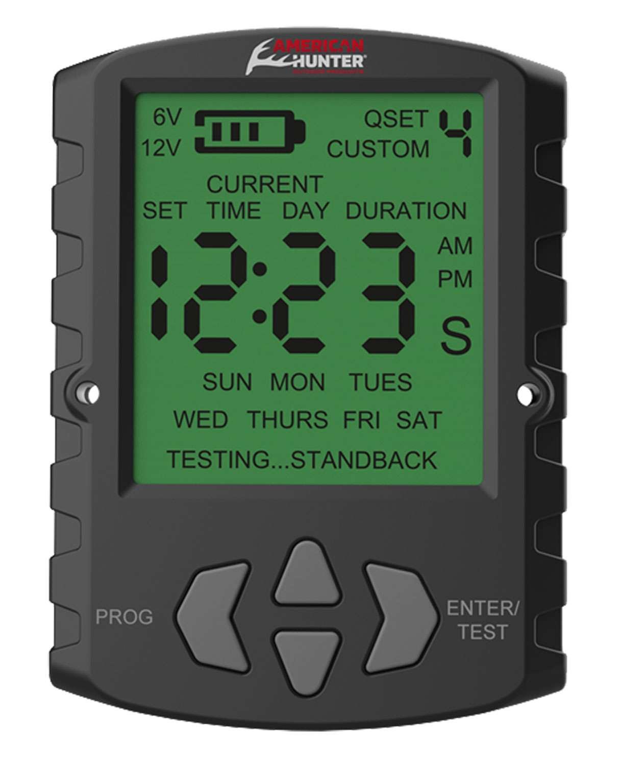 The Universal 6/12 Volt Digital Timer features digital clock timer controls when and for how long feed is dispensed. It has two Q-Set and 16 custom settings for easy/quick set up. The timer can feed 1-16 times per day with 1-30 second feed rate. Automatically detects input voltage as 6 V or 12 Volts.