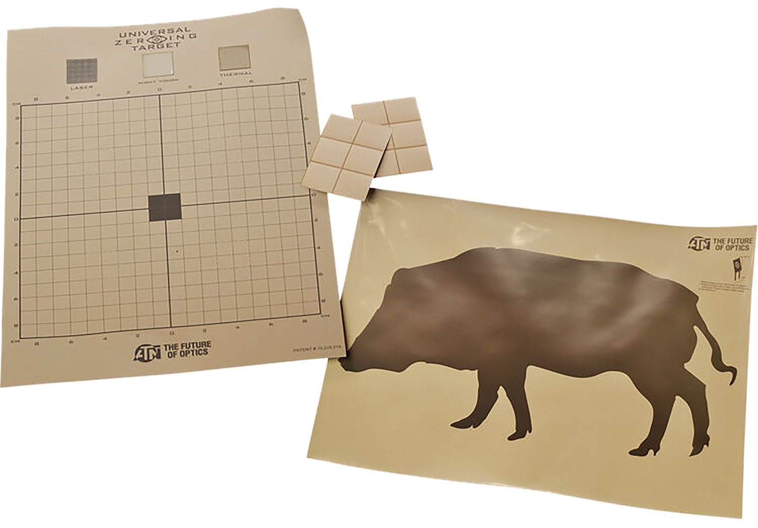 The innovative Boar Thermal Target lets you practice usage of your device. The pasters allow you to reuse the targets and get the most out of the package. Universal Thermal Target to get your scope Zeroed and Ready to go quickly. Includes one boar thermal training target, one universal thermal training target and 12 thermal plasters.