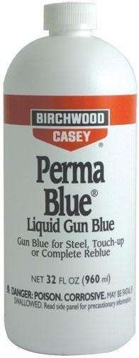 A #1 bestseller PERMA BLUE Liquid Gun Blue is the proven way to touch-up scratches and worn spots or to completely reblue most guns. It will give a non-streaky even blue-black finish to steel (except stainless). All parts to be blued must be thoroughly cleaned with a metal cleaner such as BIRCHWOOD CASEY Cleaner-Degreaser and any rust must be removed before applying the blue.