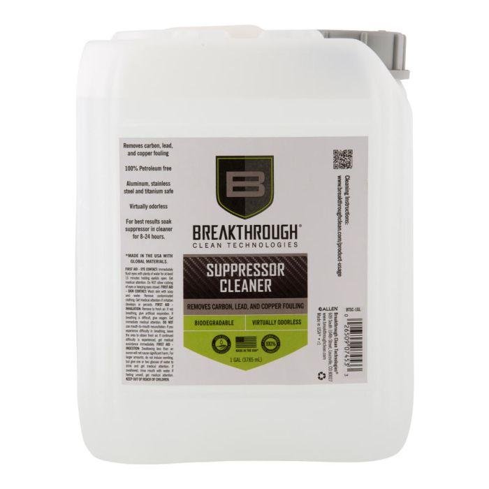 The Breakthrough Clean Technologies Suppressor Cleaner is a water-based ammonia-free cleaner that removes heavy carbon and lead deposits. Utilizing a proprietary blend of chemical surfactants and detergents Suppressor Cleaner effectively works to neutralize all corrosive residues preventing damaging rust and corrosion without etching or harming your suppressor. With no noxious fumes or hazardous chemicals Suppressor Cleaner is a safe and effective choice when it comes to removing stubborn carbon & lead build-up in your suppressor.