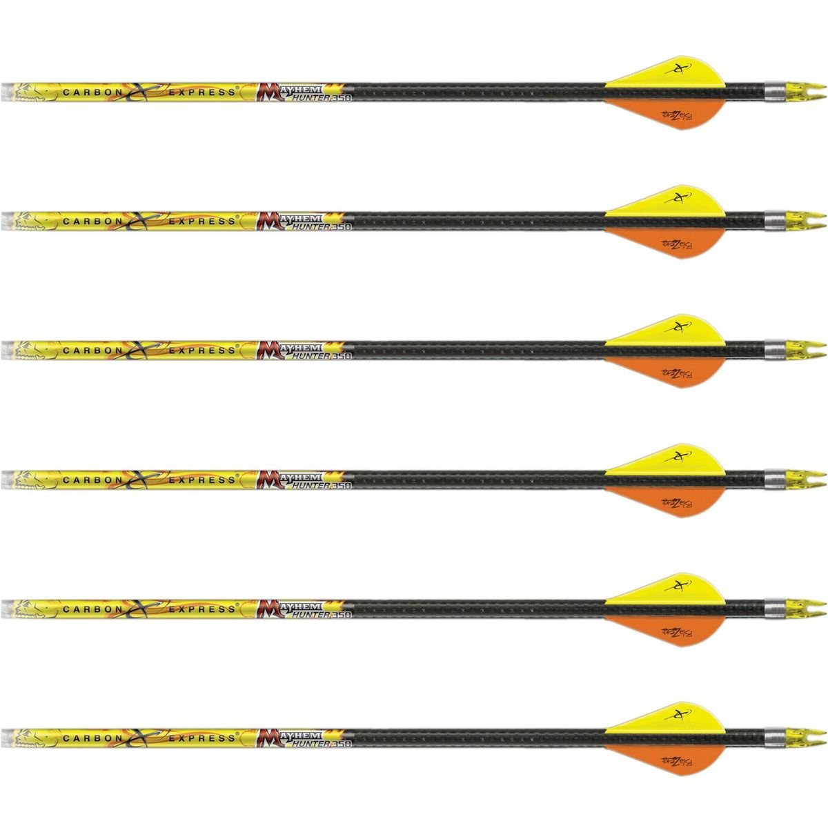 The Mayhem Crossbolt is engineered with advanced carbon materials to provide superior spine consistency. The combination of speed accuracy and penetration gives you 100 percent confidence at the moment of release. Mayhem Crossbow 6-pack includes inserted moon nocks plus 6 universal flat nocks.