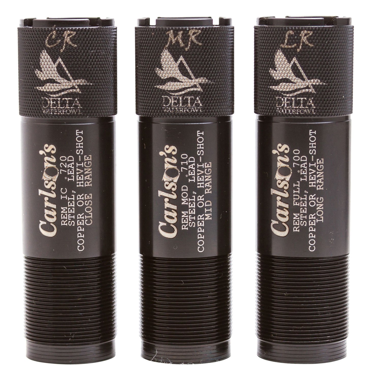 Carlson’s Waterfowl Choke Tubes are manufactured from 1704 stainless steel and designed to throw tighter and denser patterns than conventional choke tubes. These choke tubes feature a 25% longer parallel section in the choke, thus throwing more consistent patterns. Each choke tube is knurled on the end to allow for quick and easy removal. Each choke tube has the constriction and size laser marked on the end and body for easy reference. Steel shot may be used through these choke tubes with exceptional results. *Note- Do not shoot steel shot larger than BB or any steel load faster than 1550 FPS through the Full or Extra Full Constrictions. Slugs, sabots, and rifled slugs are not to be used in any choke constriction tighter than Improved Cylinder. Remember to pattern your shotgun choke tube with the specific shotshell load you are going to be using. Different brands of ammunition throw different patterns from the same choke tube.