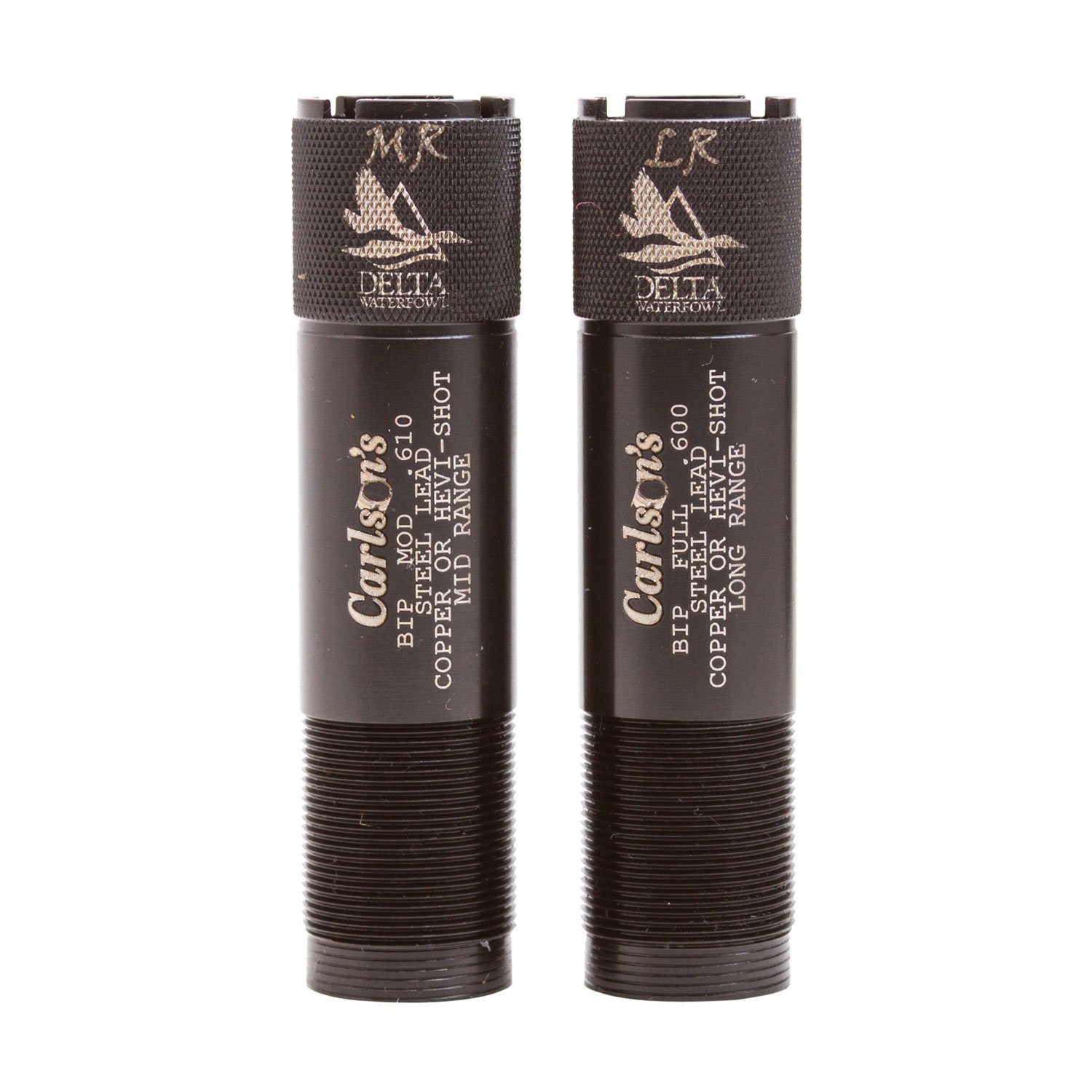 Carlson’s Delta Waterfowl Extended Choke Tubes are manufactured from 1704 stainless steel and designed to throw tighter and denser patterns than conventional choke tubes. These choke tubes feature a 25% longer parallel section in the choke, thus throwing more consistent patterns. Each choke tube is knurled on the end to allow for quick and easy removal. Each choke tube has the constriction and size laser marked on the end and body for easy reference. A steel shot may be used through these choke tubes with exceptional results. Do not shoot steel shot larger than BB or any steel load faster than 1550 FPS through the Long Range constriction. Loads that exceed this size and speed should be used with the Mid Range choke tube.