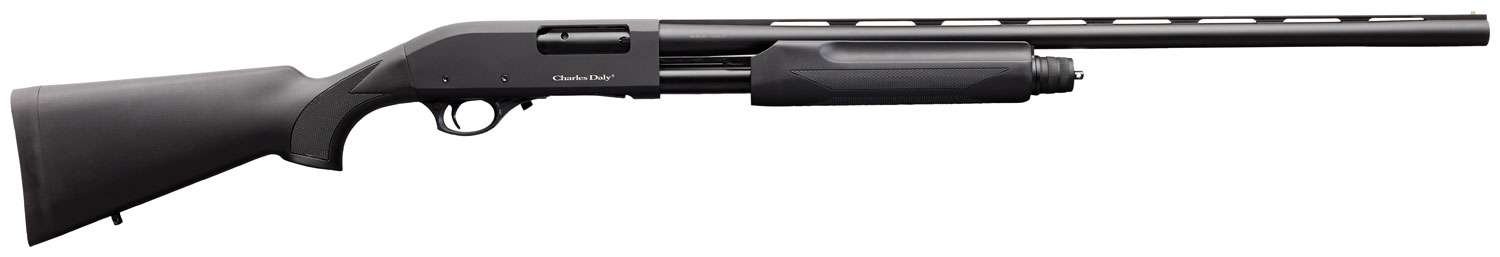 Charles Daly’s 301 pump-action shotgun is the definition of reliability. It has a aluminum receiver with a steel barrel, single trigger, vent rib, and brass bead front sight.