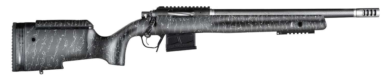 Designed to handle long range tactical and precision shooting applications, the BA Tactical is well equipped for most challenges. The Black Nitride action is machined to include a 20-MOA integral rail, fitted to a target contour Christensen Arms carbon fiber barrel, and paired with a stainless steel side-baffle muzzle brake. The adjustable tactical carbon fiber composite gunstock includes a bottom picatinny rail, five flush cup mounts, and a detachable box magazine. The BA Tactical weighs in starting at 7.4 pounds and is backed by the Christensen Arms Sub-MOA Guarantee.