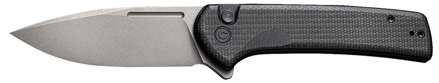Civivi Conspirator Knife features a flipper open; button lock and Micarta handle. Includes pocket clip.