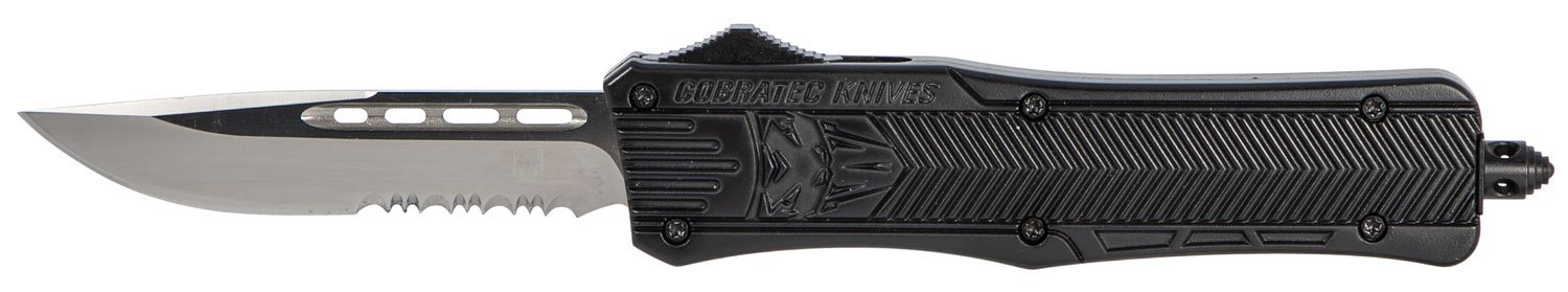The CobraTec CTK-1 is designed for use with any task. Featuring an aluminum alloy handle and an OTF (out the front) opening design it allows for rapid deployment with minimal effort. Total length with glass breaker is 8″.