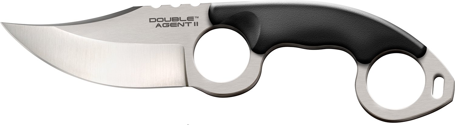 Cold Steel’s Double Agent II neck knives are thin, flat and super light, they are easy to conceal and very comfortable to wear. Their most notable and eye-catching feature, however, is their double ring handle design. Slip your index finger and your pinky finger through the integral steel rings and close your fist for a comfortable and secure grip.
