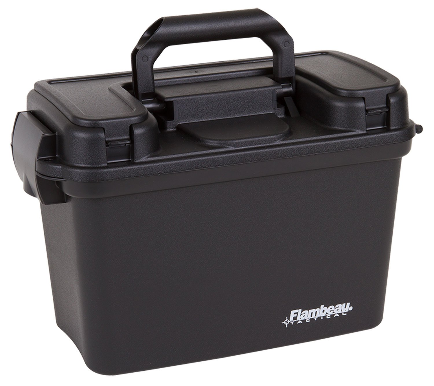 The Tactical Dry Box features a durable polymer construction with a removable tray, flip-top accessory storage compartment, water-resistant gasket, OTC latch and carry handle. Made in the USA.