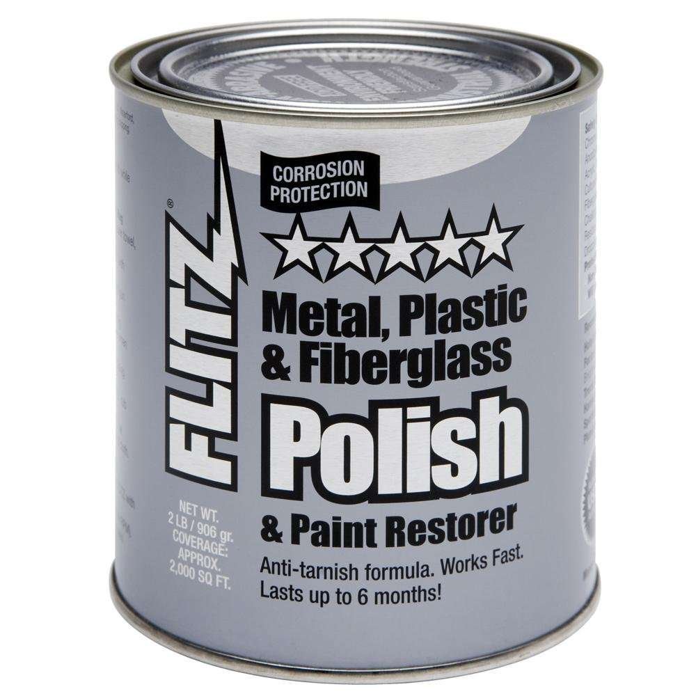 Flitz Metal Polish Paste will never dry out has an indefinite shelf life is non abrasive leaves no messy residues non toxic and environmentally friendly. Flitz Polish Paste is a concentrated cream that is unequaled in its ability to Clean Polish Deoxidize and Protect Brass Copper Silverplate Sterling Chrome Stainless Steel Nickel Bronze Solid Gold Aluminum Anodized Aluminum Beryllium Magnesium Platinum Pewter Factory Hot GunBluing Painted Surfaces Glass Plexiglas® Fiberglass® and Armatel®. Removes: Tarnish Rust Water Stains Chalking Lime Deposits Heat Discoloration Lead and Powder Residue Oxidation Bugs Tar Oil Fingerprints Tree Sap Bird Droppings Graffiti Dyes and Black Streaks. Provides Tough Durable Protection up to 6 Months in Fresh Water and up to 3 Months in Salt Water. Non-Abrasive Formula. Non-Toxic and Non-Flammable. USDA