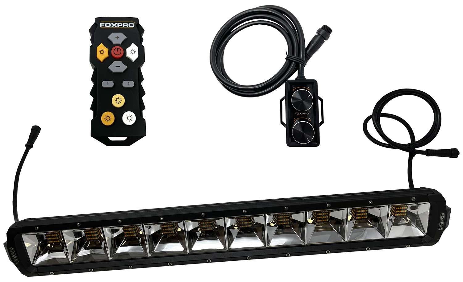 The FOXPRO Mudcutter Light Kit is the most advanced and user-friendly LED bowfishing light system on the market. The Mudcutter Light Kit allows bowfisherman to customize the light intensity and hue, ranging between 2000K to 6000K, which can be done via the wireless remote control or the hard-wired rheostat. Depending on water conditions, whether murky or clear, different hues of white light will penetrate better. The Mudcutter is as easy as pressing the on/off button and using the gradual light color change buttons to select your desired hue and the brightness up and down buttons to select your desired light intensity. Instant full white, full amber, and full mixed buttons are also provided for convenience. Mudcutter lights are designed to operate two banks from 1 remote. So if an additional kit is purchased, they can both be operated independently from the same remote. Mudcutter lights run on a battery (12V DCOnly) or generator (110V AC / 120V AC). The Mudcutter Light Kit has an IP68 Waterproof Rating.