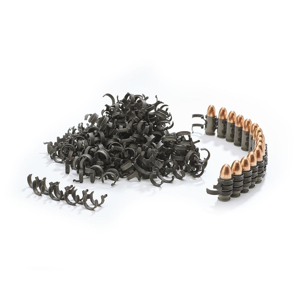 Our 9mm links are made from high carbon steel heat treated with a manganese phosphate finish. Sold in quantities of 1000. Compatible with the FM-9 and FM-9D