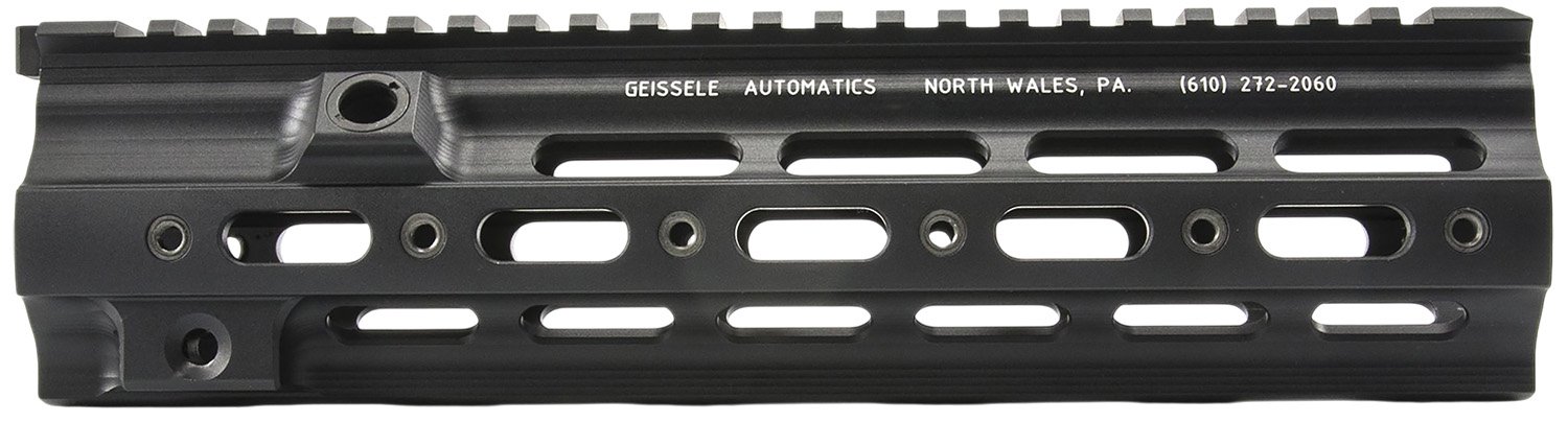 The Geissele Super Modular HK 416 rail was designed to replace the standard rail on the HK 416 weapon platform. Constructed of precision machined, 6061-T6 aluminum allows the SMR HK to incorporate strength, rigidity and modularity while utilizing the stock HK barrel nut. Finished in Type 3 Hardcoat Anodize to meet military specifications and able to use rail sections at the 3, 6 and 9 oclock positions to mount accessory rails, using steel inserts for a rock solid, steel to steel connection; the SMR HK is trusted by our Nations elite warfighters, whose direct input and feedback allowed us to develop the feature and performance rich SMR 416.