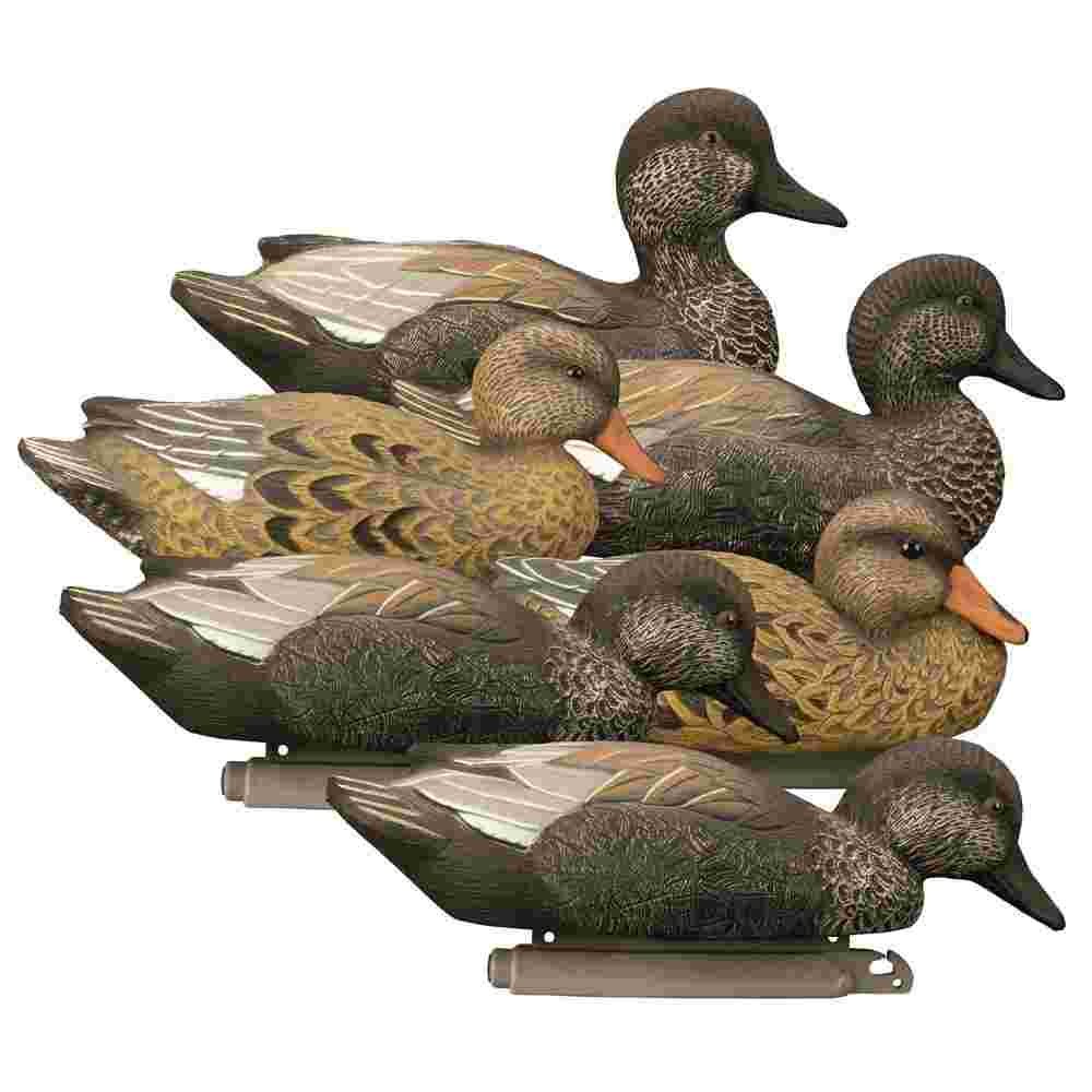 Unmatched variety attention to detail and ultra-realism in one small package! This 6-pack of foam filled Standard Gadwalls offers 5 different body postures and head positions giving your spread a very natural look. Bring confidence to any spread at anytime of the season. Higdon Outdoors set the standard for foam filled decoys and these are sure to last you season after season with their un-matched durability. Standard size decoys are slightly undersized from an average live duck and are perfect for hunters looking for lightweight packable affordable decoys. Use them on their own to pack in to your favorite public spot or to add numbers and variety to any spread. Self-righting weighted keel for quick and easy set-up in any water depth. Higdon's innovative keel clip allows simple short stringing in shallow water. Higdon's highly detailed proprietary UV painting process and deep realistic carving techniques highlight each individual feather and minimize unnatural glare even when decoys are wet. Our paint won't peel or fade so your decoys will look great season after season. Package includes: 1 Upright Drake 1 Relaxed Drake 2 Skimmer Drakes 1 Low Head Hen and 1 Resting Hen. As a Ducks Unlimited Official Licensed Product a percentage of your purchase will go toward wetland conservation.