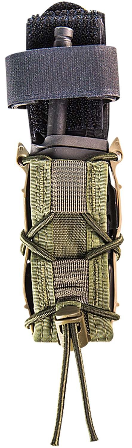 This pistol mag pouch can hold almost any caliber of pistol magazines, as well as multitools, flashlights, knives and more. Deployed easily and silently on demand. Mounts to MOLLE with the included HSGI Clip.