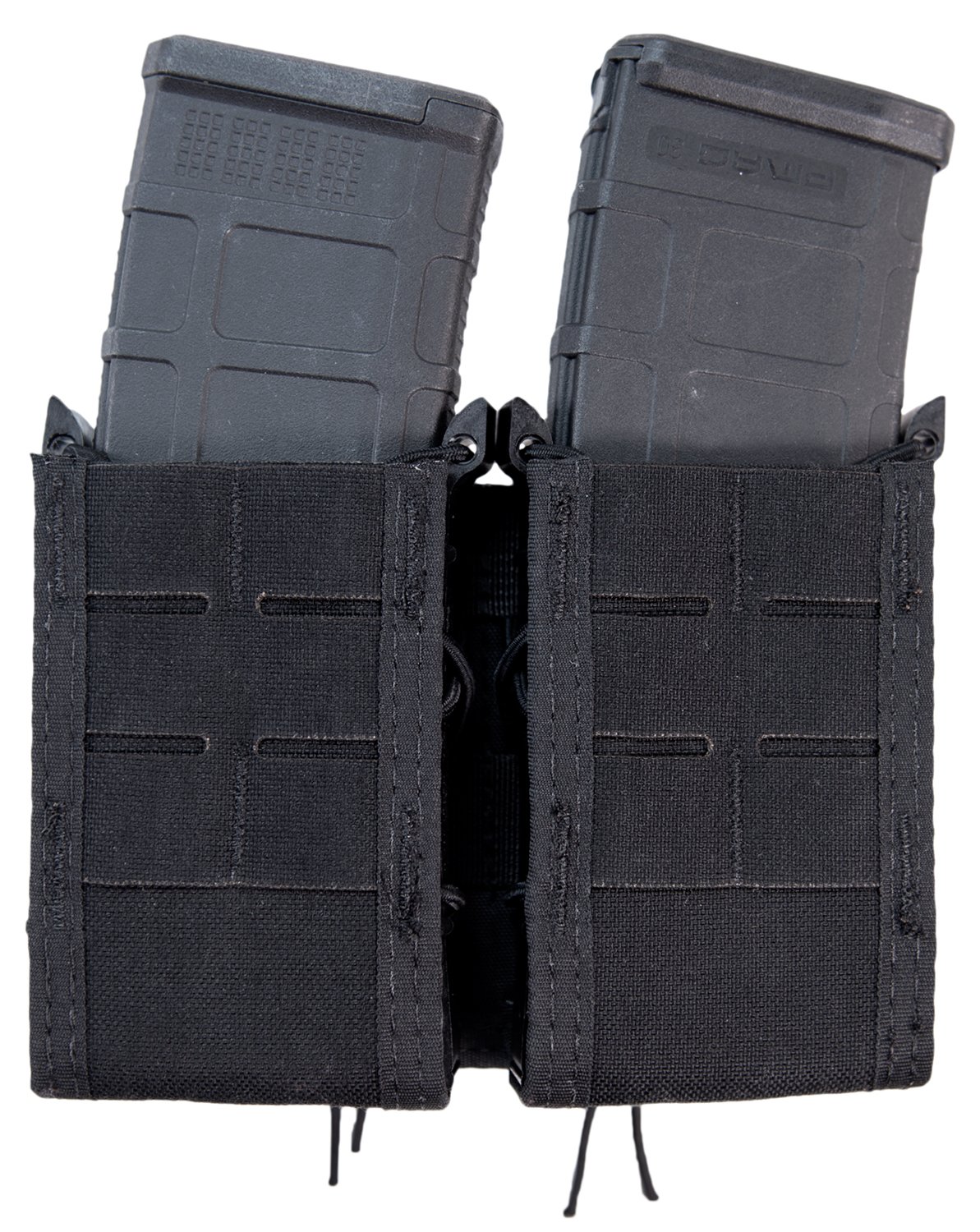 This pouch will keep two rifle magazines secure and readily available. The Duty Double Rifle TACO pouches are permanently secured to a laser-cut laminate base ensuring easy and stable mounting on any MOLLE or PALS platform, such as vests, plate carriers and battle belts. The Duty Double Rifle TACO can hold almost any caliber rifle magazine, HSGI Shot Shell Tray, and many other similarly sized items.