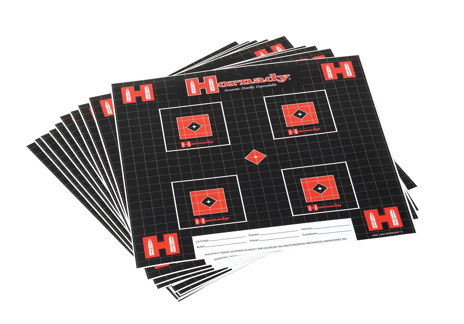 Hornady Lock-N-Load Targets feature a half-inch grid pattern and multiple aiming points. Vivid white bullet holes provide long-range visibility without binoculars or spotting scopes. Immediate feedback makes target practice fun and productive.