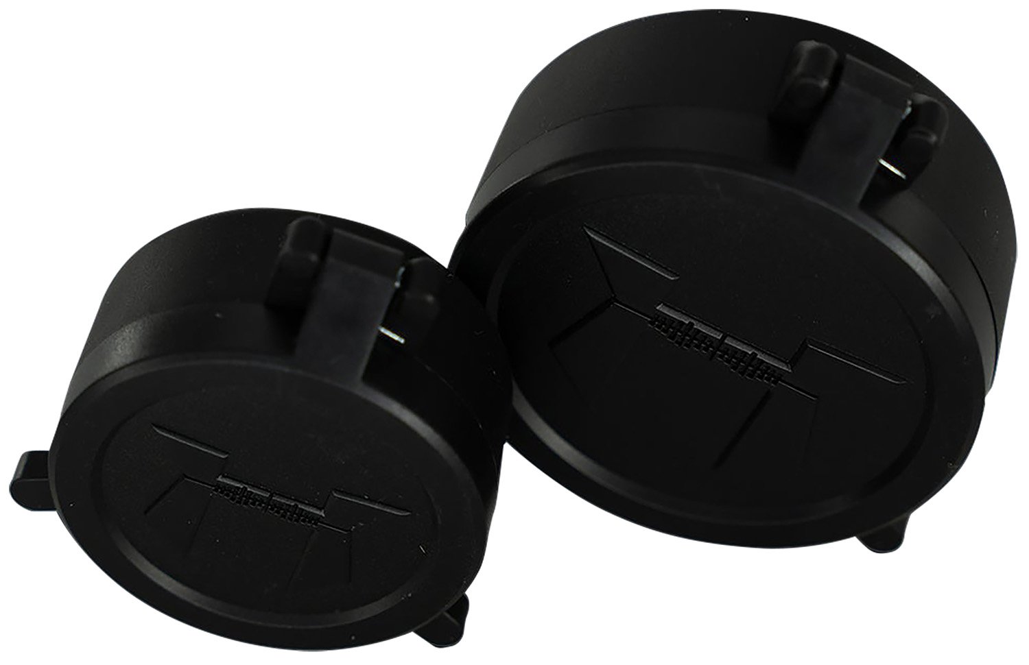 Huskemaw Flip-up Scope Lens Caps for 4-16×42 Blue Diamond scopes have a flexible rubber ring to prevent them from slipping off and are spring activated.