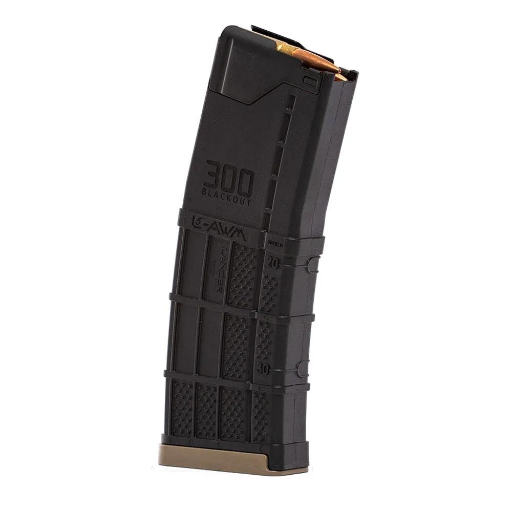 The L5AWM 300BLK magazine has been specifically engineered for use with heavy subsonic .300 Blackout ammunition particularly with 200+ grain projectiles. The updated internal magazine geometry allows these longer heavier bullets to stack properly which increases feeding reliability when compared to a traditional .223/5.56 magazine. The outside of the mag body is molded with distinctive .300 Blackout markings and the magazine ships with a contrasting flat dark earth floor plate for easy visual identification.