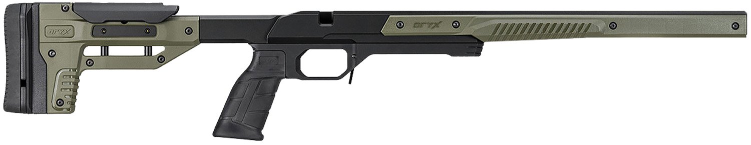 The metal chassis was engineered to improve accuracy and ergonomics through adjustability. The action is bedded on an aluminum block, and the barrel is free floated. The adjustable buttstock allows tailoring a much better fit for accuracy and speed when getting behind the scope. It takes AR15 grips, ARCA rails, M-LOK accessories and has customizable colors.