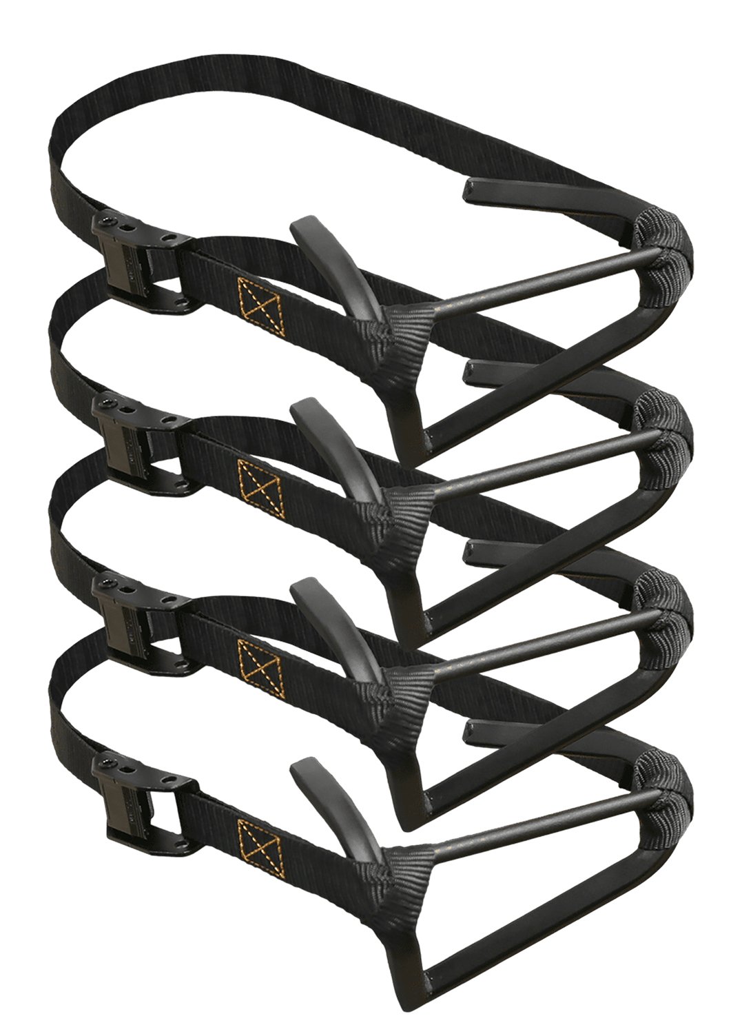 The Micro Stagger Steps boast an ultra-compact design that stacks seamlessly for ease of carry. Durable powder-coated steel construction with nylon strap and cam buckle.