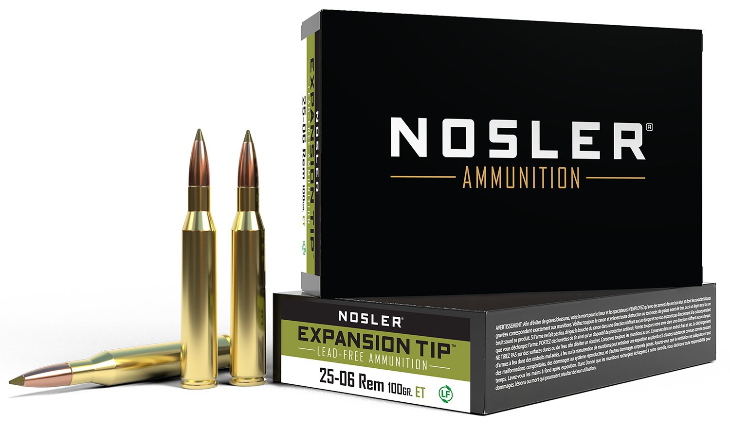 Nosler E-Tip, Lead-Free, Ammunition is loaded up front with the high-performance, lead-free, E-Tip hunting bullet. The E-Tip bullet combines uniform expansion with 95%+ weight retention for superior penetration and excellent terminal performance on all types of big game.