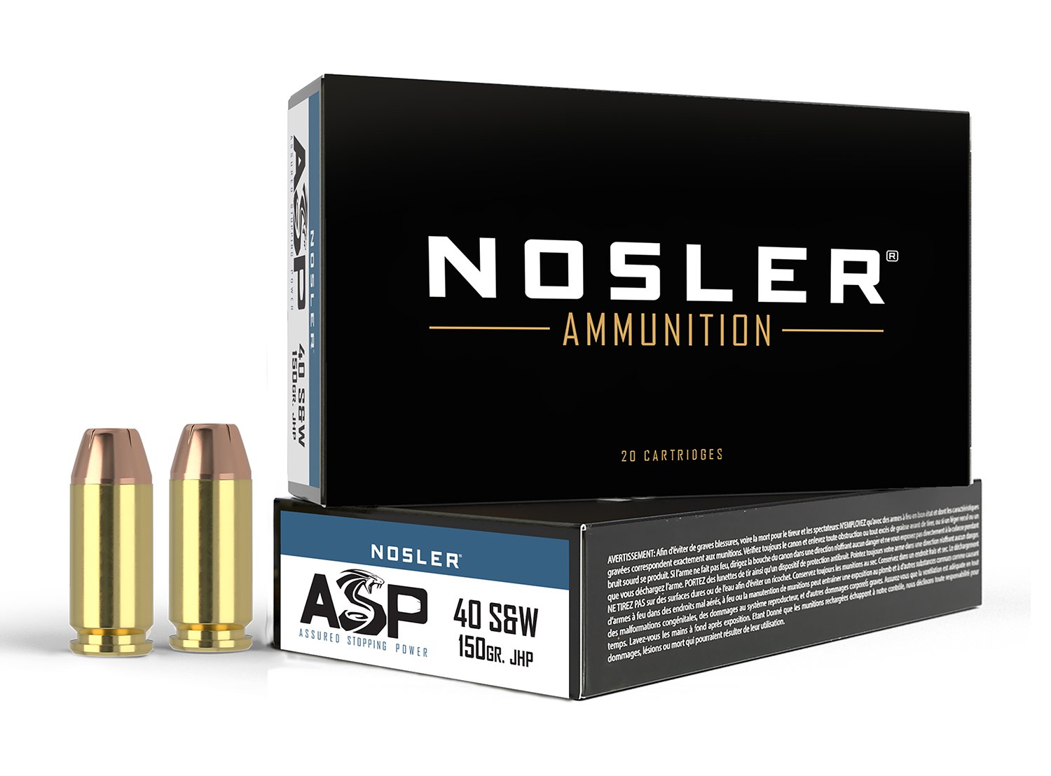 Nosler’s Assured Stopping Power (ASP) ammunition line combines match-grade accuracy with a reliable, effective, hollow-point bullet. Evolving from the Match Grade ammunition line, ASP ammunition is loaded with the same quality and attention to detail that Match Grade users have come to expect, with the addition of an expanding hollow-point bullet designed specifically for duty and defensive use. Loaded in Nosler head-stamped brass, and utilizing quality components throughout, the ASP ammunition can be relied upon to perform in a wide variety of applications and ranges. Equally, at home on duty or in a defensive role, Law Enforcement professionals and civilians alike can rest assured that ASP ammunition will perform when needed.