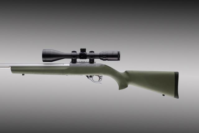Hogue’s revolutionary O.M.? series stocks are made similar to the popular rubber grips. Constructed by molding a super strong rigid fiberglass reinforced stock that precisely fits the rifle action. Then the stock is OverMolded with the same rubber as on Hogue grips that results in a comfortable non slip super smooth attractive finish. These stocks feature a sleek straight comb palm swells and a “varminter” style forend which is treated with a unique “Cobblestone” texture. All centerfire rifle stocks are equipped with a recoil pad. All centerfire bolt action models come standard with aluminum pillar bedding in the stock.