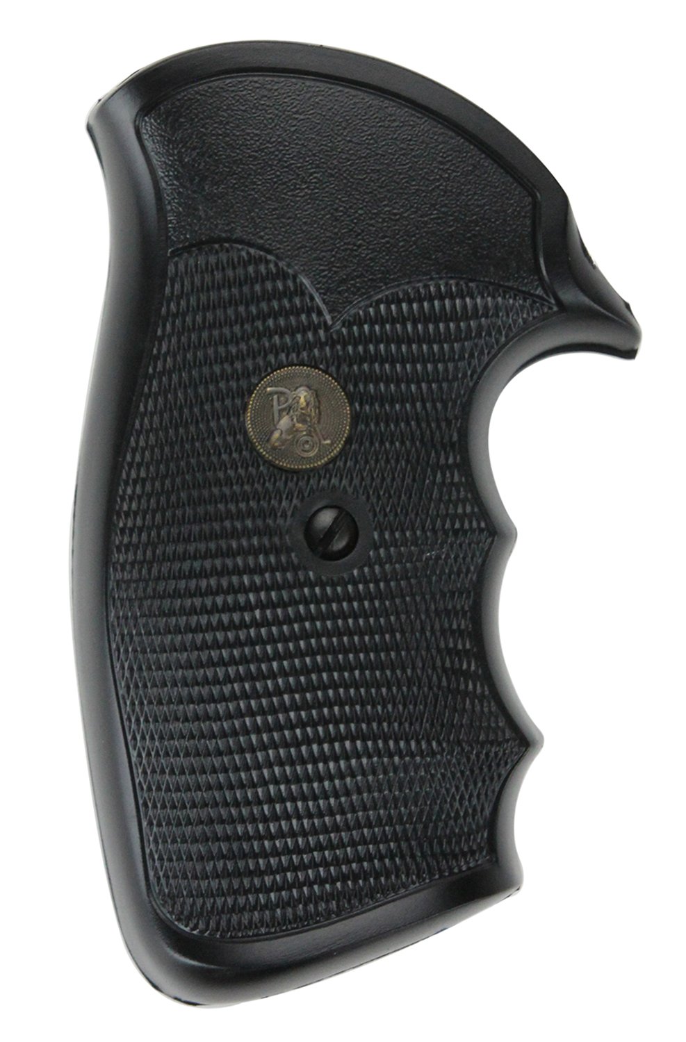 Pachmayr Gripper Grips for revolvers are made from a specially formulated rubber compound optimized for control and recoil absorption. The finger groove style is popular for combat shooting and hunting. A slight palm swell fills the hand but is not so large as to be uncomfortable. Gripper Grips are fully checkered for appearance as well as for control. Designed for correct hand position and point very well.
