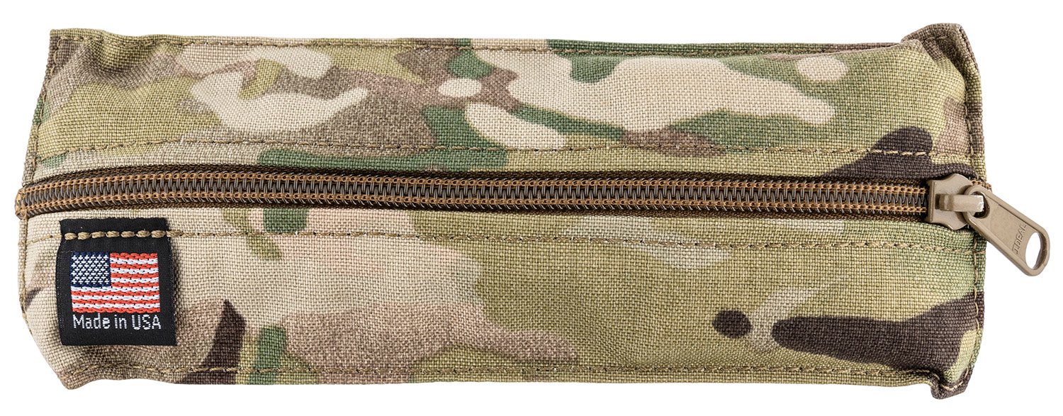 Pro-Shot Defense M/LE Kit for AR-15/M4/M16, 5.56mm/223 Cal., M17, M18, M9, & other 9mm Pistol Variants. Multi-Cam Pouch Kit includes 32.5″ working length Pro-Tuff Coated (PTC) rod, 5 pieces; Black Out multi-purpose locking swivel T-handle; Brass Core; Bronze bristle bore brush for 5.56mm/.223 Cal. 9mm; 5.56mm/.223 Cal. chamber brush; Brass spear tip jag; 1 Step Mil-Spec CLP 0.5 fl. oz tube; Brass patch holder; double ended Nylon AP brush; 1″ round cleaning patches; 2.25″ square cleaning patches; Original J Chamber Flag Bore Light; Bore Obstruction Remover and Tactical M/LE rod cleaning instructions guide.