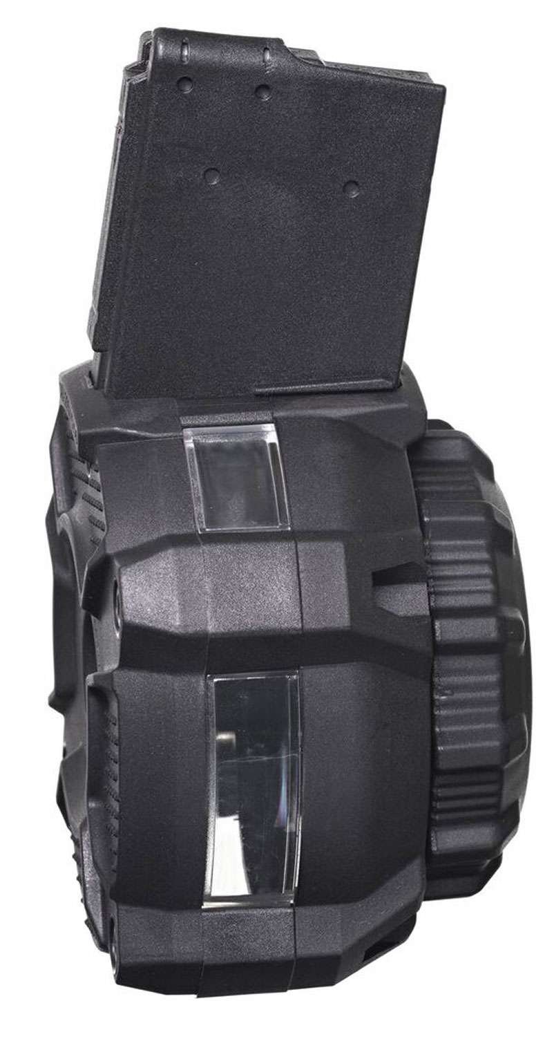 This drum replacement or spare magazine is compatible with your AR-15. It is constructed of DuPont Zytel polymer with injection molded mag follower and mag spring formed from chrome silicone wire. Made in the USA.