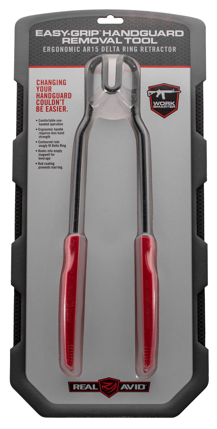 The name says it all. Ergonomic grips make one handed changing of handguards on AR15s and M16s a breeze. Simply hook to the empty magwell, place the contoured rods around the Delta Ring, squeeze the handles and pull down to compress the Delta Ring. Remove the handguard with your free hand.