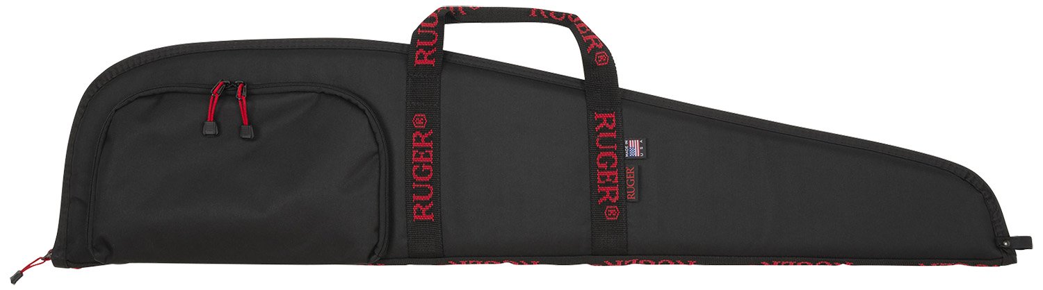 Ruger Rifle Case, by Allen, is a classic black with the Ruger name on the carry handles and a zippered accessory pocket to hold magazines and other accessories. The dense foam padding will keep your rifle secure and safe during transportation. Made in the USA.