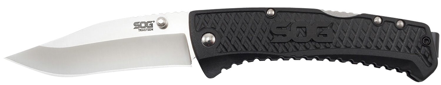 The Traction is our all-purpose line of solid lockbacks that are lightweight, durable and affordable. It comes with a satin blade. Made in a dependable 5Cr13MoV stainless steel, the sharp, straight edge blade cuts easily and quickly. The blade locks open with the proven lockback mechanism to prevent accidental closure while in use. Its all housed in a thick, strong glass-reinforced nylon (GRN) handle that is contoured and textured to enhance grip and comfort. A low-carry pocket clip make it an easy daily carry option.