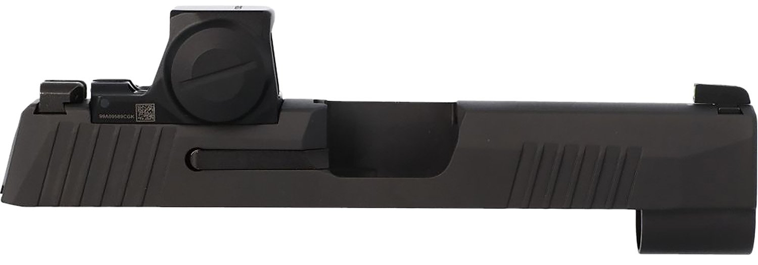 Enjoy using a slide-mounted reflex sight without needing suppressor height iron sights. The factory-installed ROMEO-X COMPACT optic sits incredibly low to the slide to enjoy co-witness with the included standard height iron sights, giving you a consistent, familiar sight picture. Factory replacement 3.7″ 9MM slide for the P365XL.