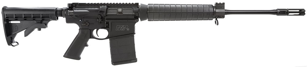 Smith & Wesson M&P10 Rifle is versatile, easily accessorized, and suitable for a wide variety of recreational, sport and professional shooting. The barrel features 5R rifling, an Amornite finish, and a flash suppressor. It has a chromed firing pin, ambidextrous safety selector, magazine, and bolt release. The six-position stock has a sling swivel. This Optic Ready model has a 18″ barrel, Mid-Length handguard with a Picatinny-style rail, and a mid-length gas system.