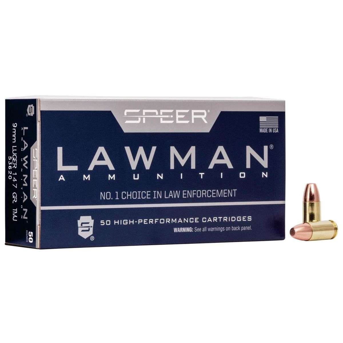 Speer Lawman Handgun Ammunition 9mm Luger 147 gr. TMJ 985 fps 50/ct