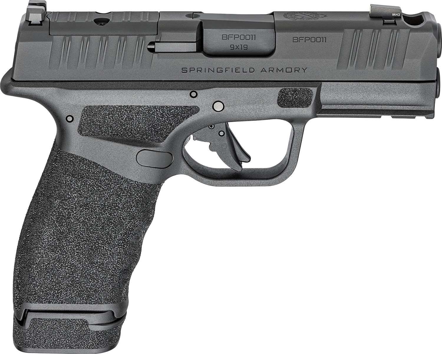 Designed with those who live in restrictive locales that require restricted capacities in mind, the Springfield Armory Hellcat Pro 9mm Luger pistol combines the performance of a larger handgun with class-leading concealability. The Hellcat features unique top slide serrations to maximize your grip on the slide; OSP (Optical Sight Pistol) configuration; co-witnessing U-Dot sights; Picatinny rail for accepting a wide range of accessories; reversible mag release; loaded chamber indicator and adaptive grip texture. Includes two magazines and a pistol case.