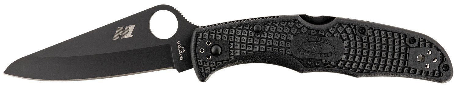 A dynamic combination of the third-generation Endura one-piece handle design and the ultra-corrosion-resistant properties of H-2 steel, the original Pacific Salt was an incredibly capable full-service folding knife. The Pacific Salt 2 Black Blade includes a high-traction Bi-Directional Texture pattern, enhanced handle ergonomics, and a versatile four-position pocket clip. In addition to these features, this knife integrates an H-2 blade with a linerless handle and a non-reflective titanium carbonitride (TiCN) blade coating and matching black coatings on its clip and hardware.