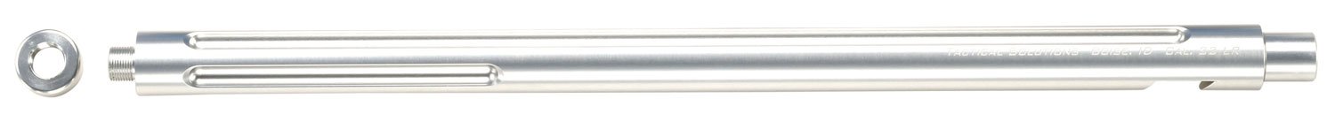 The Tactical Solutions X-Ring barrel has been designed to make your factory Ruger 10/22 lighter and significantly more accurate. It is machined from 60601-T6 aluminum for maximum strength and weight reduction. It weighs only 15oz and is 16.5″ long with a1:16″ twist rate and 1/2″x28 threaded barrel and has a .920″ OD. Designed to fit most Ruger 10/22’s and after market 10/22 style receivers. The barrel has a chromoly steel liner with a polished 11 degree crown. This barrel is silver.