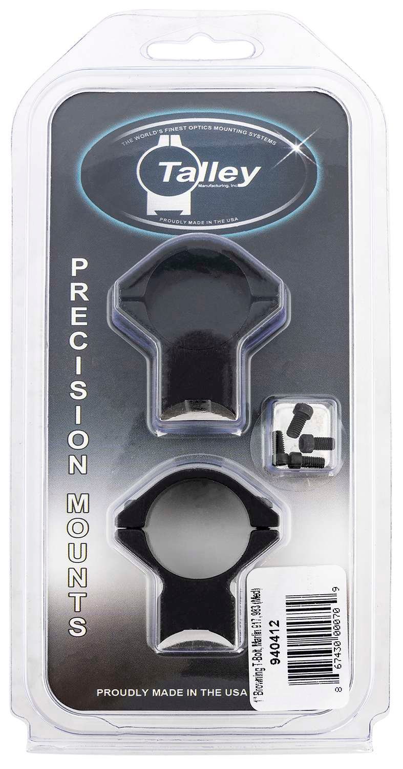 Made in America, these Browning T-Bolt Scope Mounts made by Talley Manufacturing offer a unique and simplified one-piece integrated scope ring and base solution for Browning T-Bolt rifles. This simplified mounting system eliminates the possibility of an out of alignment interface or loose connection between the ring and base of traditional two-piece designs. Ultimately this provides more strength and durability than rival steel rings and bases, but with a lighter overall weight. Fully CNC machined from lightweight aircraft-grade aluminum to the industries tightest tolerances, this rigid scope mounting platform requires no lapping and is ready to go out of the box.