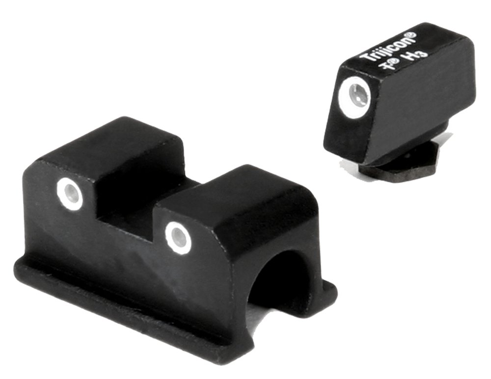Trijicon Bright & Tough Night Sights are three-dot iron sights that increase night-fire shooting accuracy by as much as five times over conventional sights. Equally impressive, they do so with the same speed as instinctive shooting – and without the need for batteries. Housed in a metal body and cushioned within silicone rubber, Bright & Tough Night Sights feature a unique shock-resistant design. Each lamp is capped with a sapphire jewel to help evenly distribute the light while protecting the lamp from solvents and puncture. Contained within aluminum cylinders for additional protection, the lamps are mounted on silicone rubber cushions to withstand shock and heavy recoil. Green lamps are warranted for 12 years from the date of manufacture. Professional installation recommended. Front Sight Width: 0.142″. Front Sight Height: 0.244″. Rear Sight Height: 0.331″.