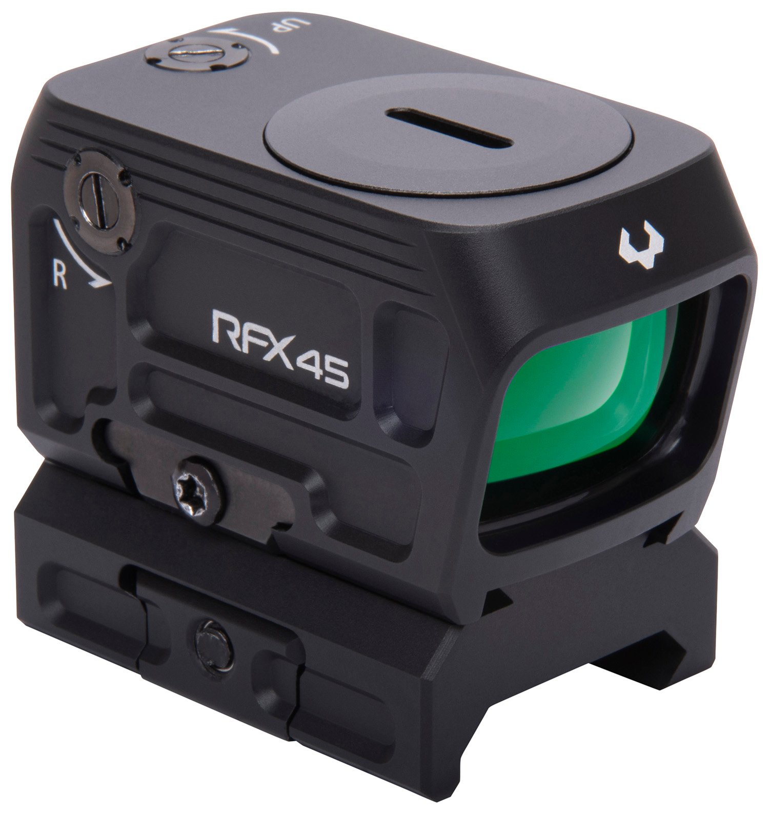 The Sight of Your Dreams. The all-new RFX 45 is packed with industry-leading features while offering a tremendous value to the shooter. A rock-solid machined 6061 aluminum housing, fully multi coated lenses, audible and tactile adjustability, INSTANT-ON activation w/ memory and auto shut off and a 50k hour battery life are just a few of the features that make the RFX 45 a must-have for any shooter.Viridian invented green laser pistol sights almost two decades ago ushering in a new era of visibility and inspiring change across the industry. In 2021, Viridian continued to lead the market by launching the RFX line of reflex sights, exclusively with highly visible green LED’s. The RFX 45 Closed Emitter Green Dot Sight is the latest addition to the RFX line of electro optics.