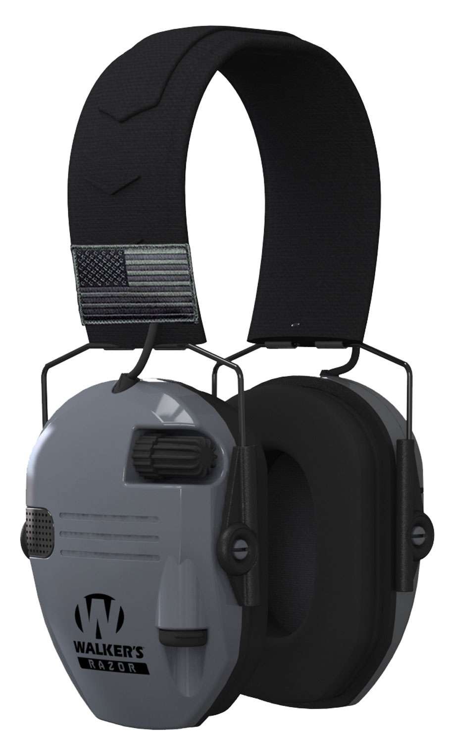 The Razor Slim Electronic Patriot Muff Series has ultra-low profile ear cups, two US Flag patches, and rubberized coating. It also has two Hi-Gain Omnidirectional microphones, audio input jack, and a low noise/frequency tuned for natural sound clarity. This Sports South Exclusive model features a 23 dB rating and a gray finish.