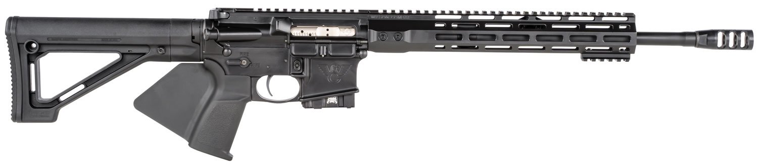 The CA Compliant Protector Carbines from Wilson Combat have been designed for professional level performance in a CA Compliant AR package. At the heart of every Protector is our Wilson Combat Match-Grade precision button rifled barrel, mated to a Black Nitride treated Mil-Spec bolt carrier group with MPI inspected Carpenter 158 bolt for impressive long-term reliability. The free-floating Wilson Combat M-LOK handguard has a slim, ergonomic profile that shields the black nitride finish non-adjustable gas block. Other features are a durable and low-signature Armor-Tuff coating; Wilson Combat Match-Grade, precision button rifled stainless steel barrels finished off with a TacFire muzzle brake that helps reduce felt recoil and muzzle rise; Wilson Combat exclusive 2-stage Tactical Trigger Unit for a trouble-free, superior, crisp trigger pull every time with a modular construction that simplifies takedown and cleaning after high round count training sessions; Ergonomic comfort features like the Wilson Combat Ambidextrous Safety Selector; Strike Industries Featureless Grip and Magpul MOE Fixed Carbine Stock complete this high performance package that is tailored to the needs of the well-armed Californian.